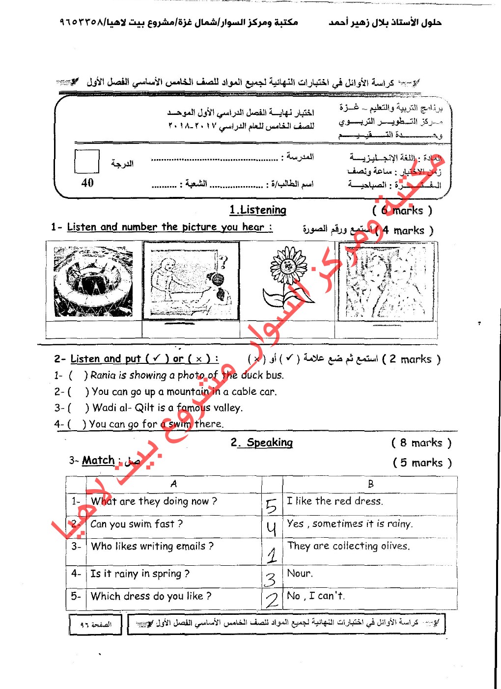 إجابة امتحانات اللغة الإنجليزية للصف السادس من كراسة الأوائل للأستاذ بلال زهير أحمد – مكتبة ومركز السوار