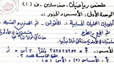 ملخص شامل لجميع وحدات الرياضيات للصف السادس- الفصل الأول